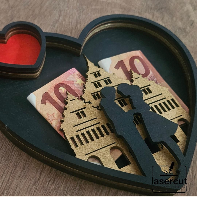 Hinter dem Rathaus können Geldscheine dekorativ eingesteckt werden – ideal als kreative Geldgeschenk-Verpackung für Geburtstage, Hochzeiten, Jubiläen oder besondere Anlässe.