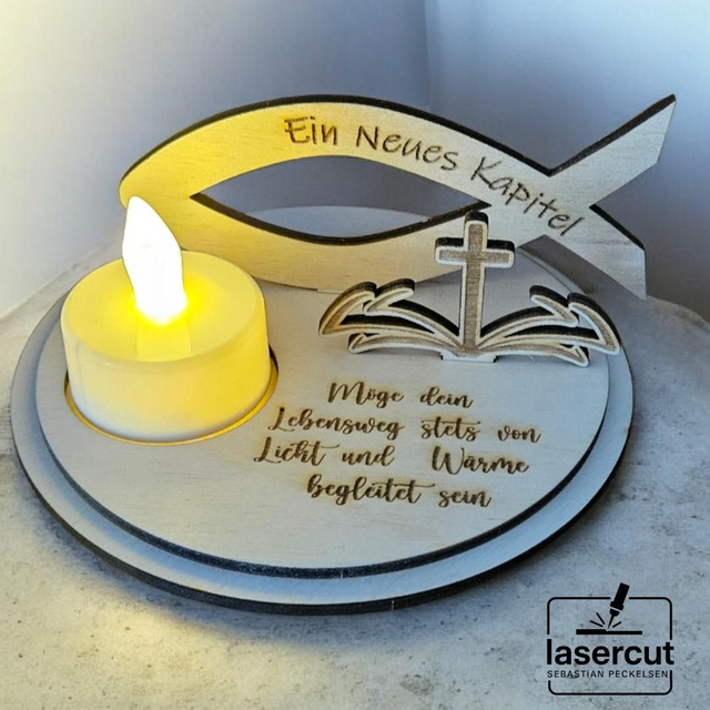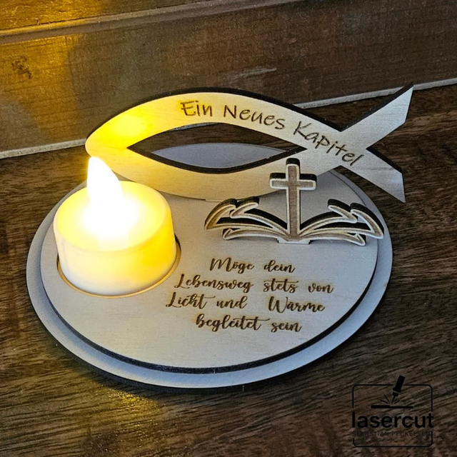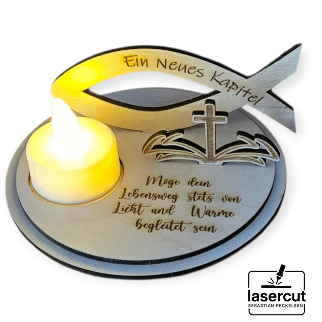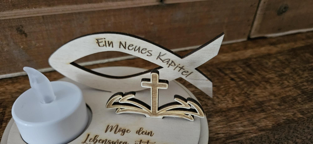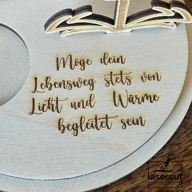 Lasergeschnitten aus Holz überzeugt er durch seine natürliche Optik und sein zeitloses Design. Mit einem Durchmesser von ca. 12 cm und einer Höhe von ca. 4,5–5 cm passt er perfekt auf Tische, Fensterbänke oder Regale.
