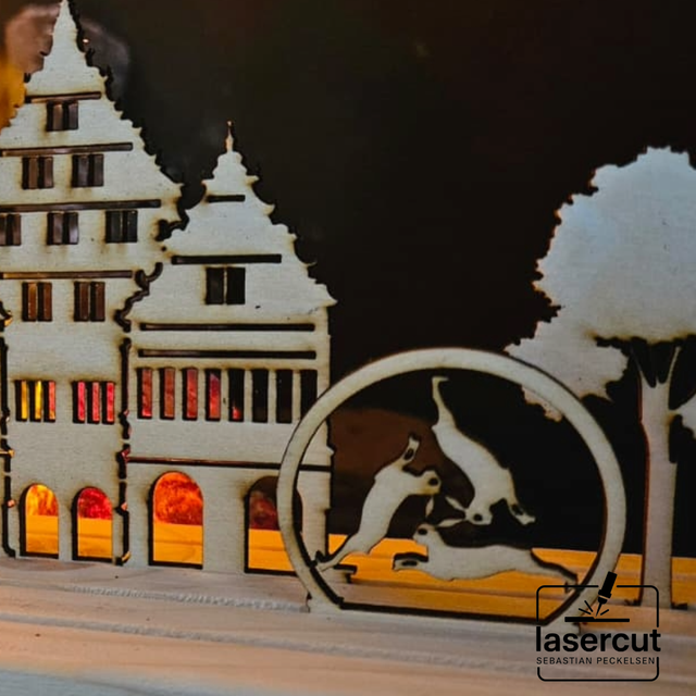 Entdecke unsere handgefertigte Paderborn Skyline aus Holz 🌆, präsentiert auf einem hochwertigen Kiefernholz-Sockel. Die detailreich gelaserten Gebäude-Elemente werden als Steckobjekte geliefert und sind wahlweise in Linde 🍃 (beidseitig beschichtet) oder Walnuss 🌰 (beidseitig beschichtet) erhältlich. Auf Wunsch können beide Holzarten auch kombiniert werden ✨.