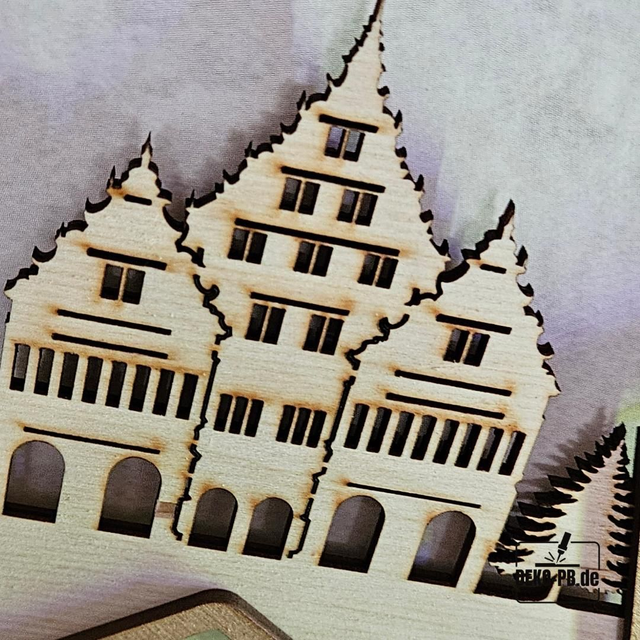 Mit seinem detailreichen Paderborner Rathaus-Motiv und den goldenen Akzenten vereint er traditionelles Handwerk und lokale Verbundenheit – ein echter Blickfang für alle Paderborn-Liebhaber!