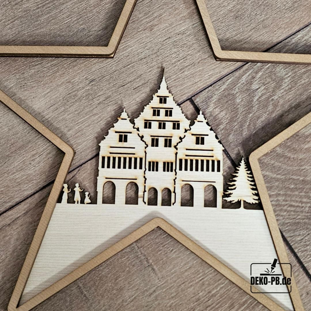 ✨ Paderborner Weihnachtsstern aus Holz – mit goldenem Glanz und Rathausmotiv ✨