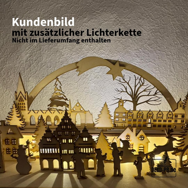 Jedes Stück ist ein Naturprodukt, daher sind kleine Abweichungen in Maserung und Farbe möglich. Auch leichte Schmauchspuren vom Laserschnitt können auftreten – sie verleihen dem Schwibbogen einen besonderen, rustikalen Charme.